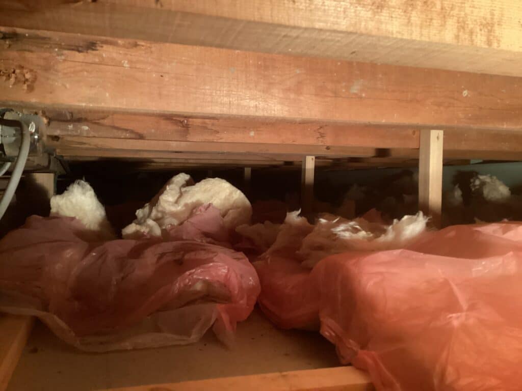 引き裂かれた天井裏の断熱材
